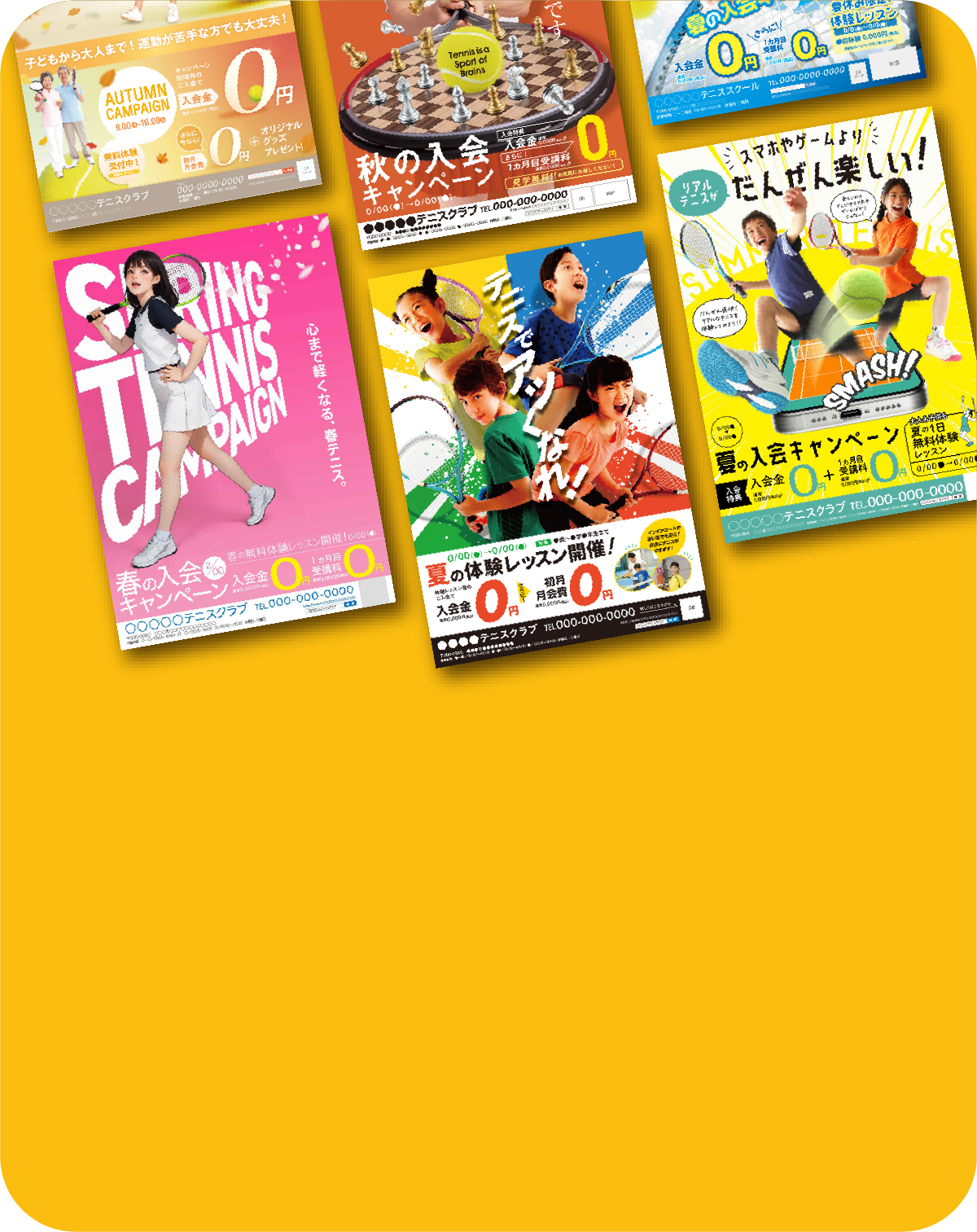 過去の反響データをもとにした実績テンプレートをベースに、貴社専用に写真・色・キャッチコピーを最適化して制作いたします。さらに、自社撮影のモデル写真やオリジナルAI画像も活用することで、“保護者に伝わる”オリジナル性の高いデザインを、初回から完成度高く・スピーディーにご提案 いたします。